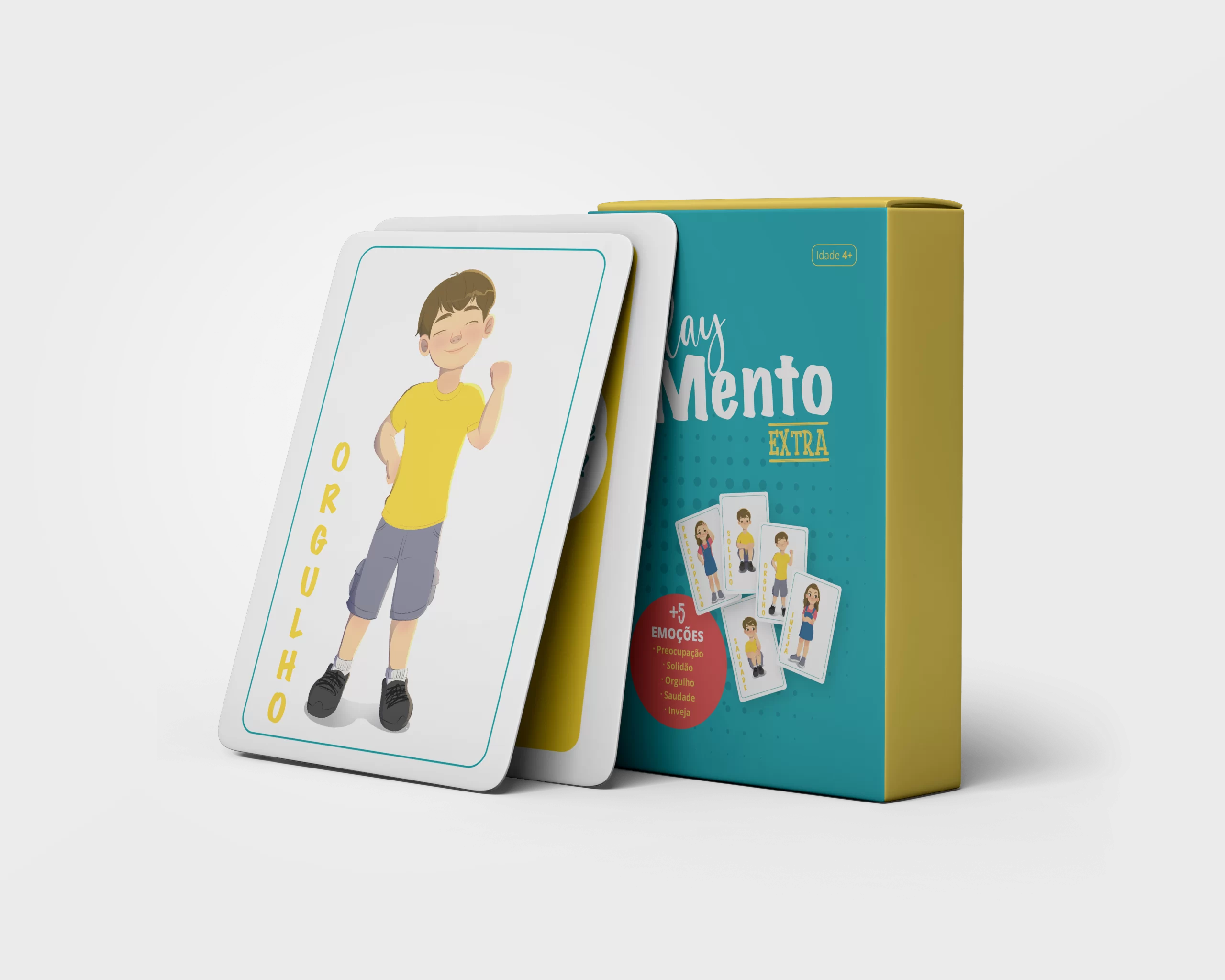 O PlayMENTO extra possui 10 cartas emoção e 5 cartas pergunta e vem com uma proposta de 2 jogos/dinâmicas.